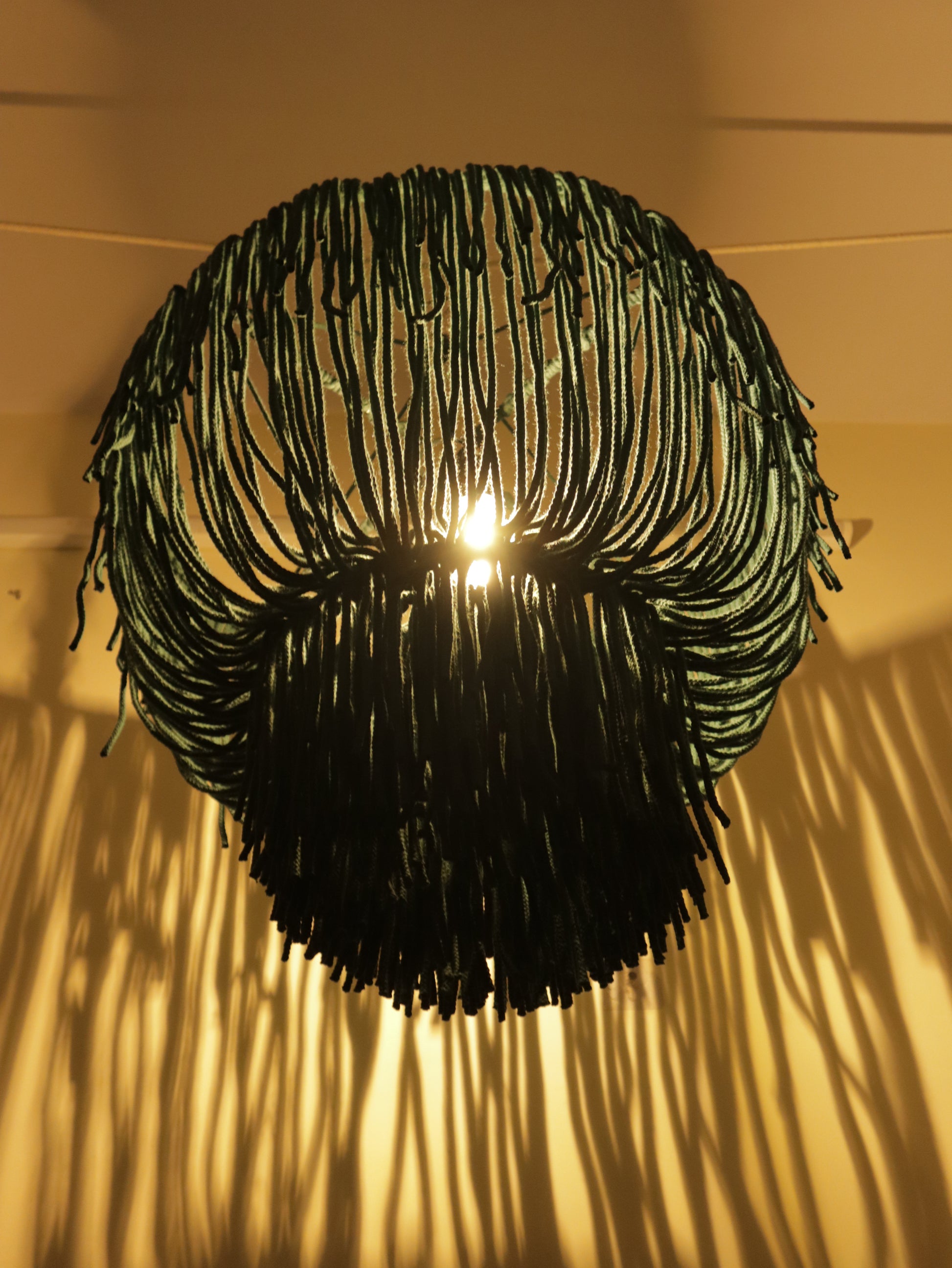 Bring a touch of handmade artistry to your home with this stunning Handwoven Boho Macrame Chandelier. Crafted by me, an artist passionate about macrame, this chandelier is made using natural cotton ropes in a beautiful shade of Forest green for an elegant, earthy vibe.
